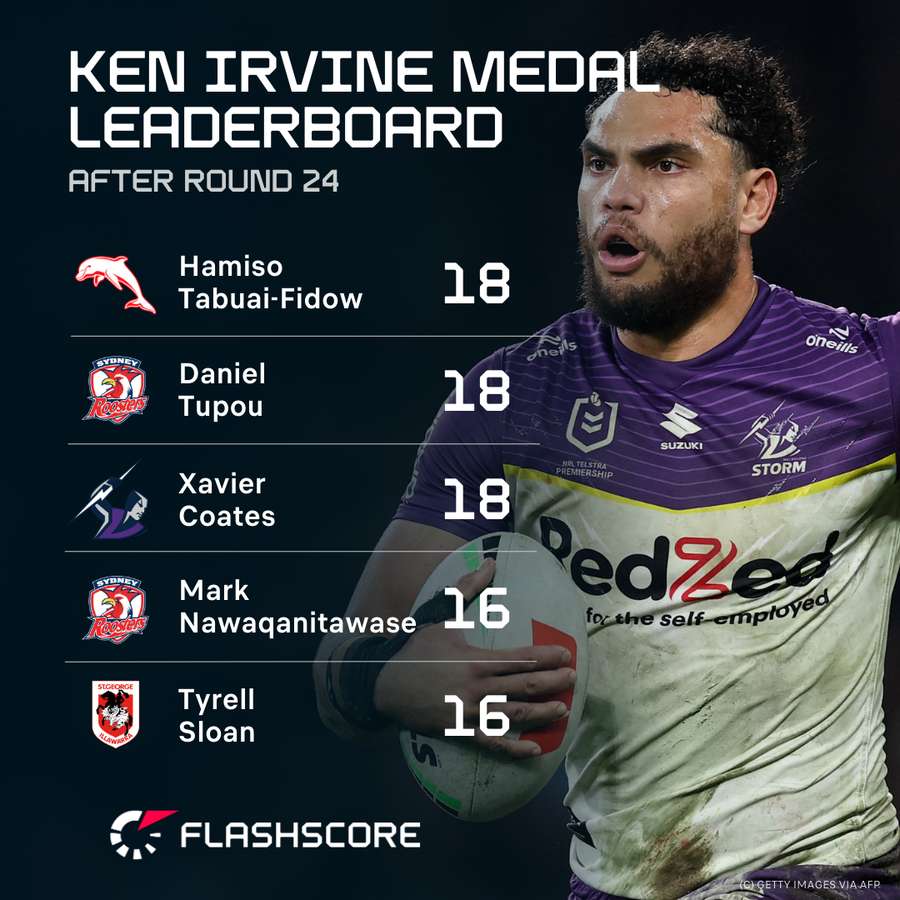 This time it was a hat-trick from Rooster Daniel Tupou and a double from Xavier Coates which saw them both join Dolphins fullback Hamiso Tabuai-Fidow on 18 tries each.